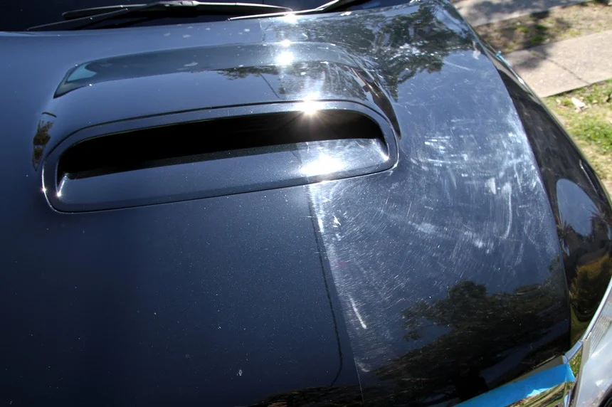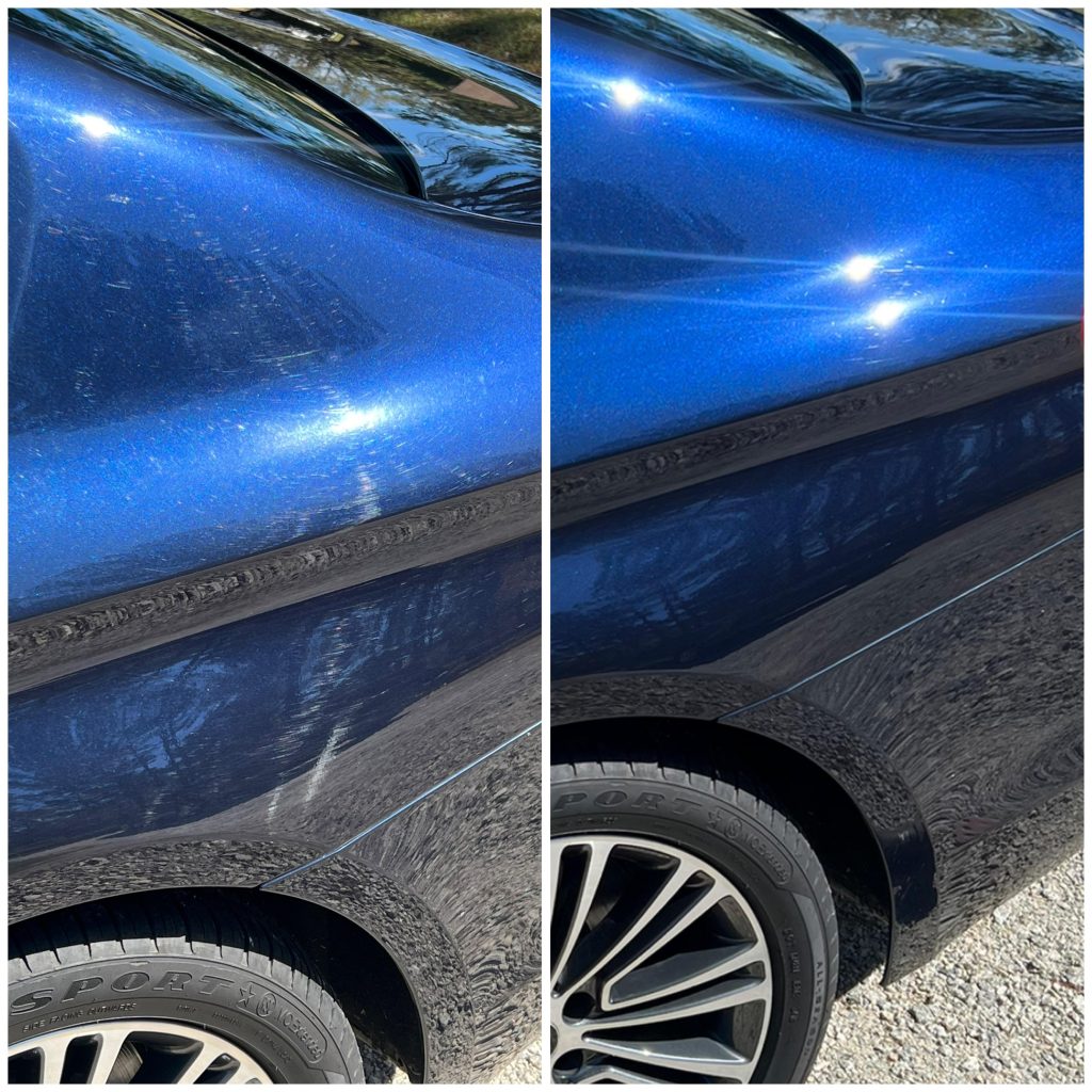 We proceed to work a small area, and monitor improvement of paint clarity(commonly known as a test section). Once desired result is achieved, we proceed to cut the entire vehicle, working one small section at a time. During this step, it is common that the vehicle will get dusty from the “cutting action”.